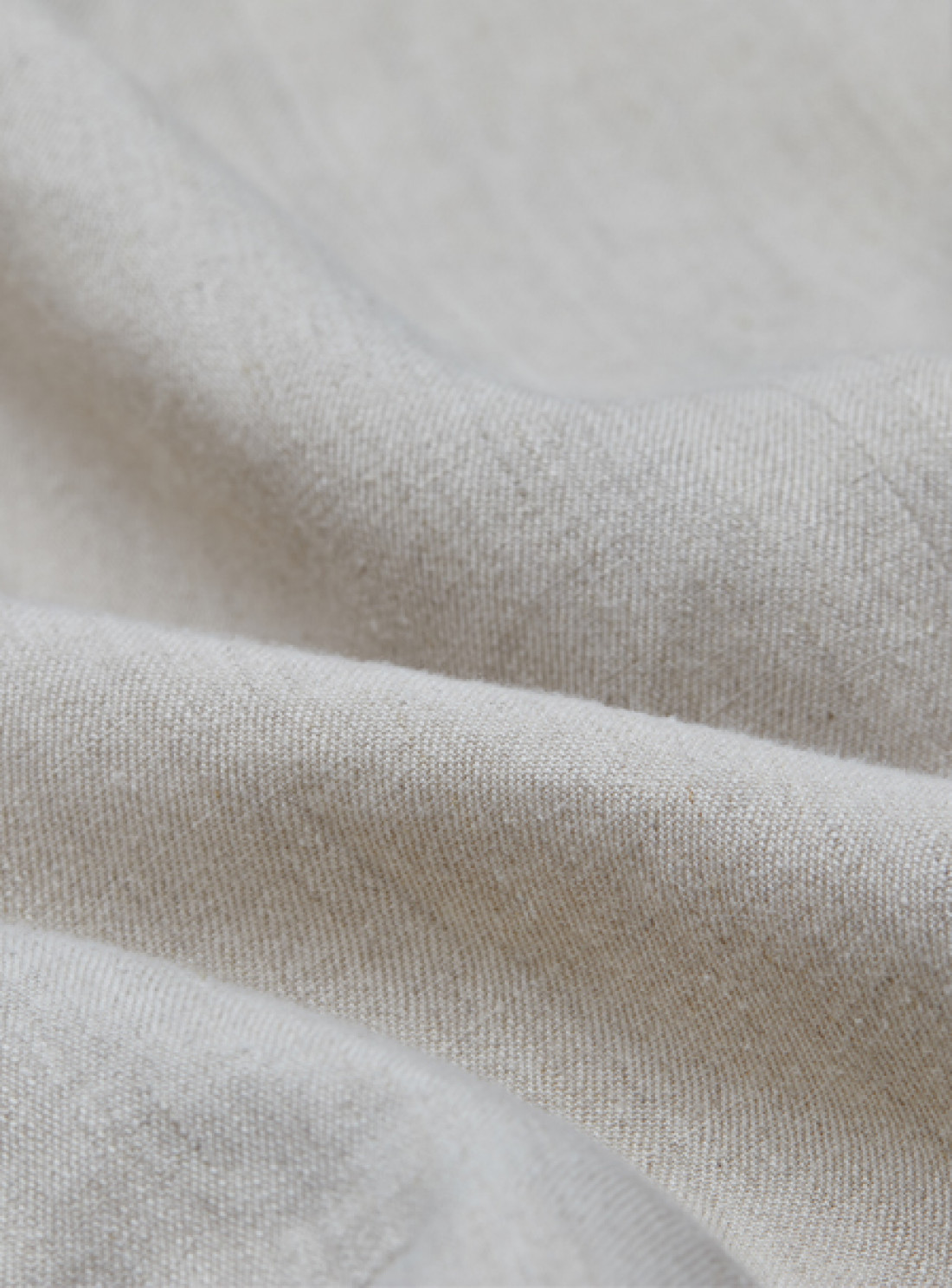 收获后的亚麻,置于田间野外,历经雨水浸沤,获得皮层麻纤维,不经过化学沤麻染色加工,呈现自然原麻色。会因为釆收当年的气温高低而呈现出不同深浅的麻色。